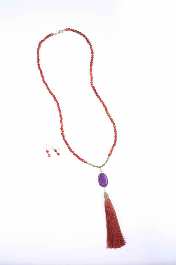 Collar largo de piedras naturales en cornalina y pirita.